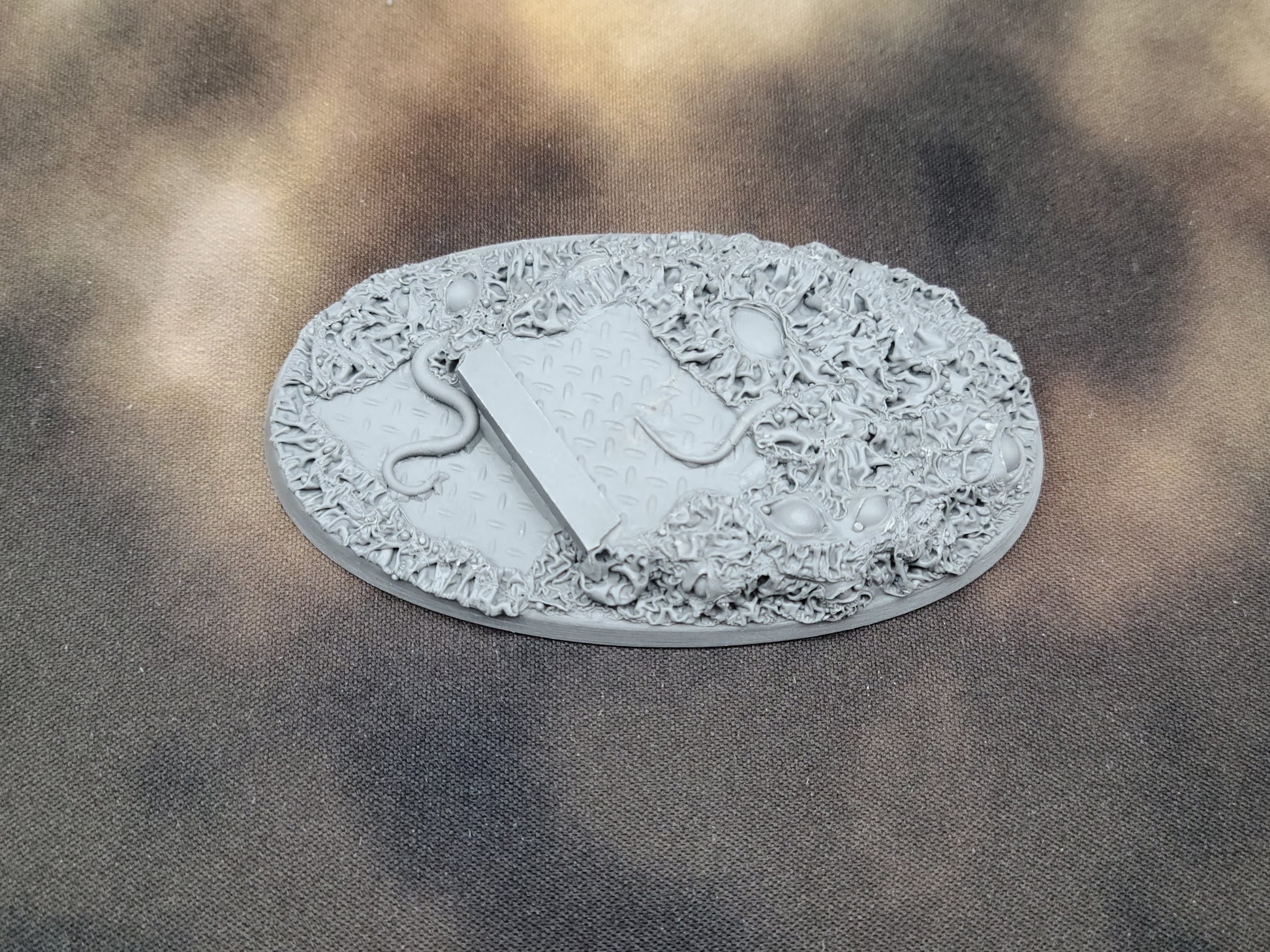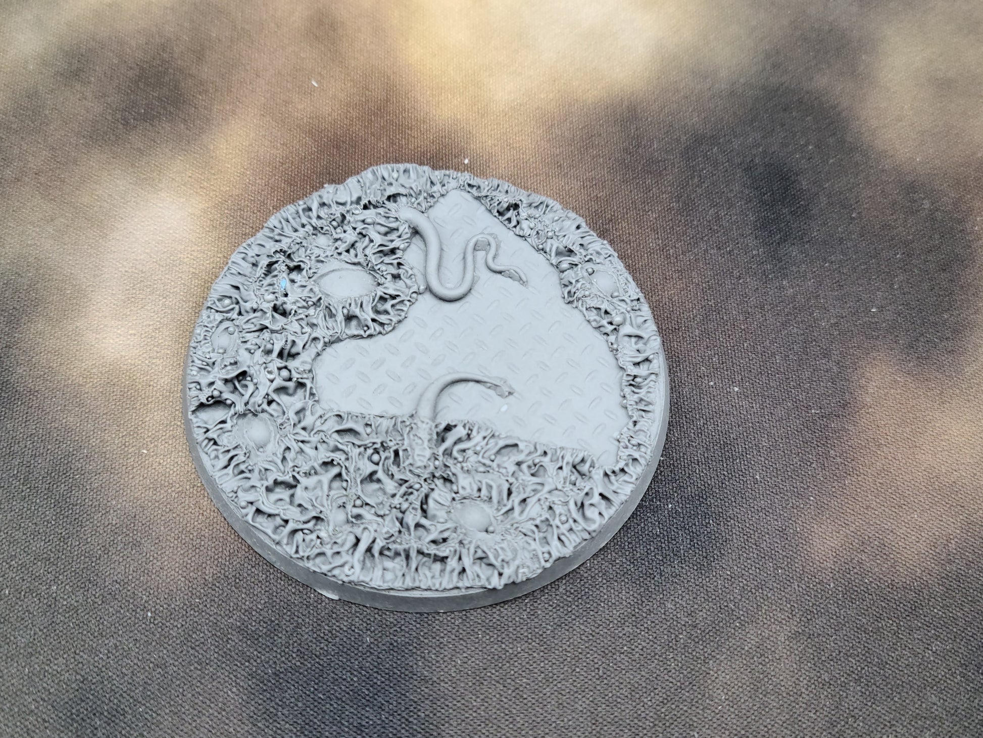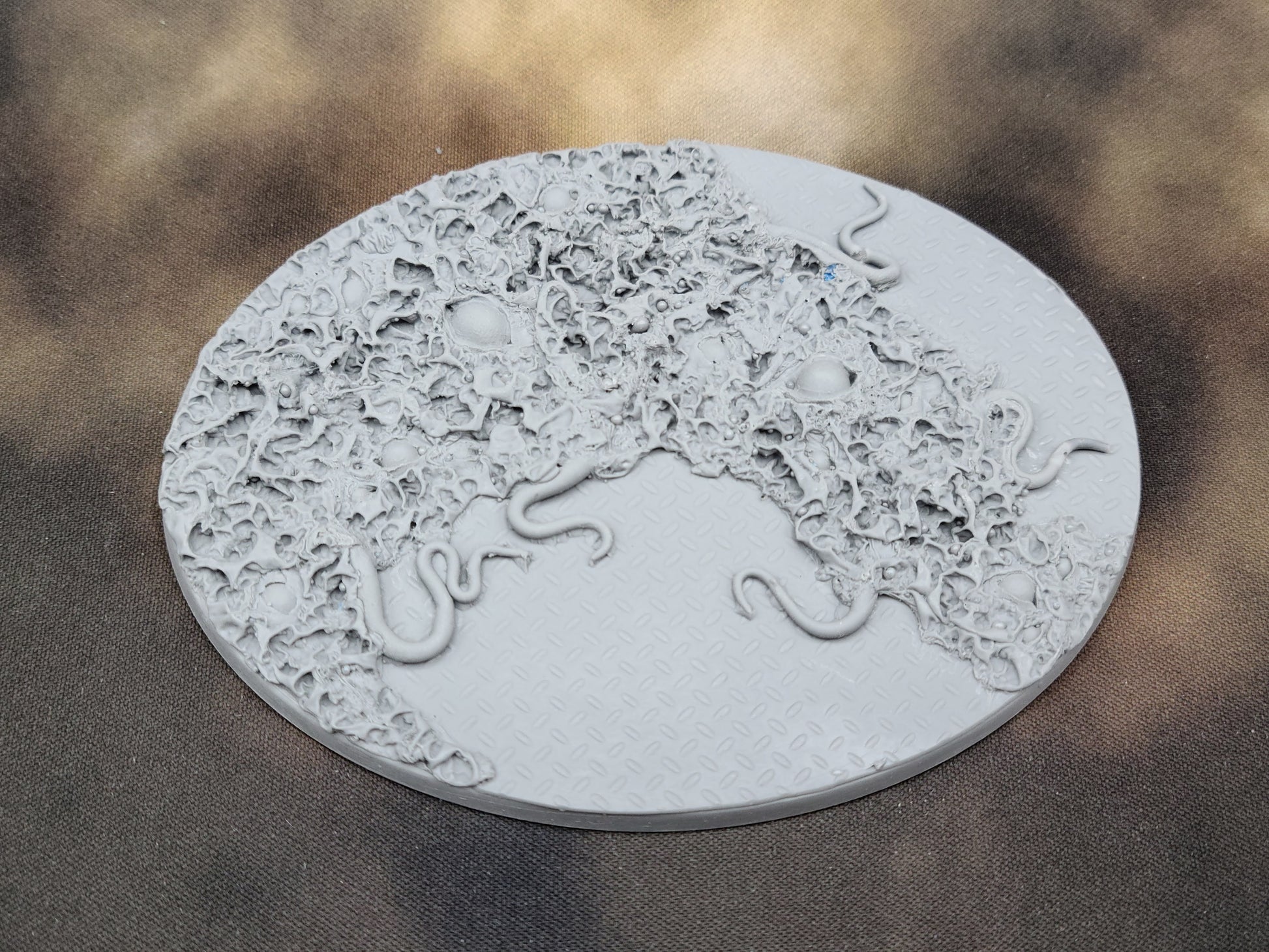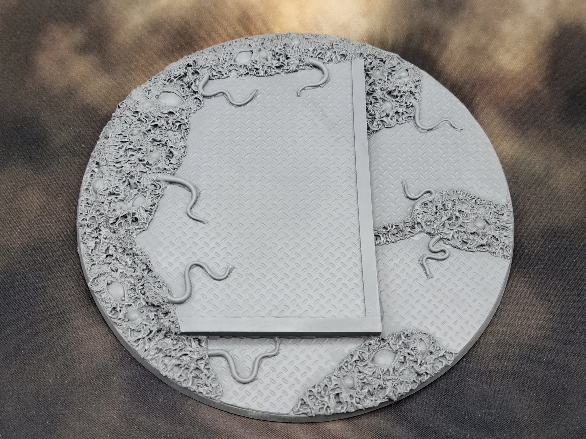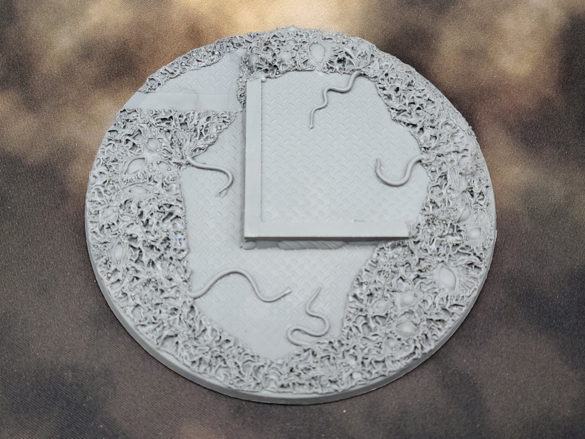 Fleshy sinew adorns the floor of a long-forgotten outpost. Perhaps, it isn’t totally abandoned after all? Our Corrupted Outpost bases are perfect for showing off an alien infestation or the corruption of some sort of dark god. Whether you put the creatures that caused the corruption on top or those who are fighting it is up to you!