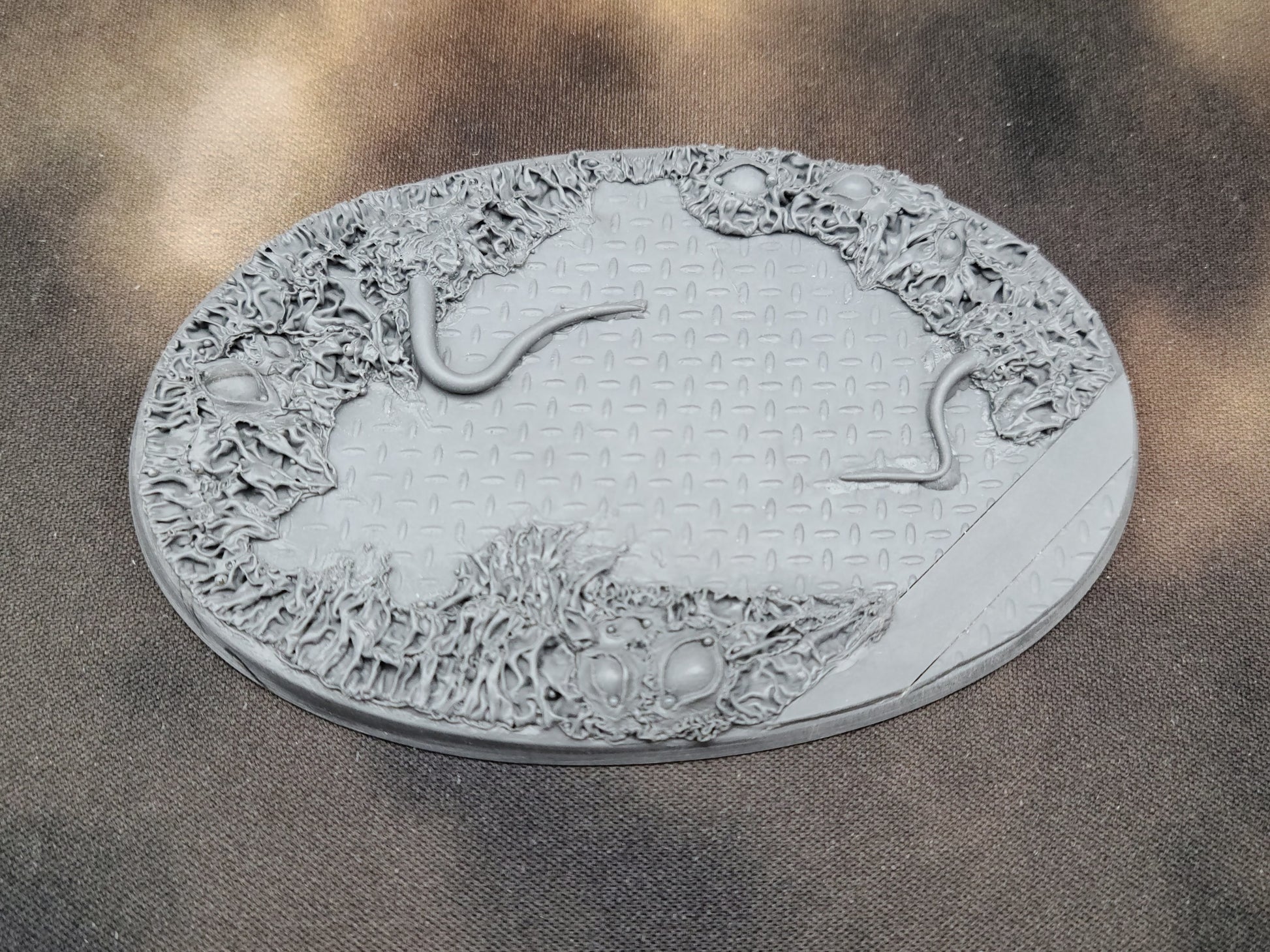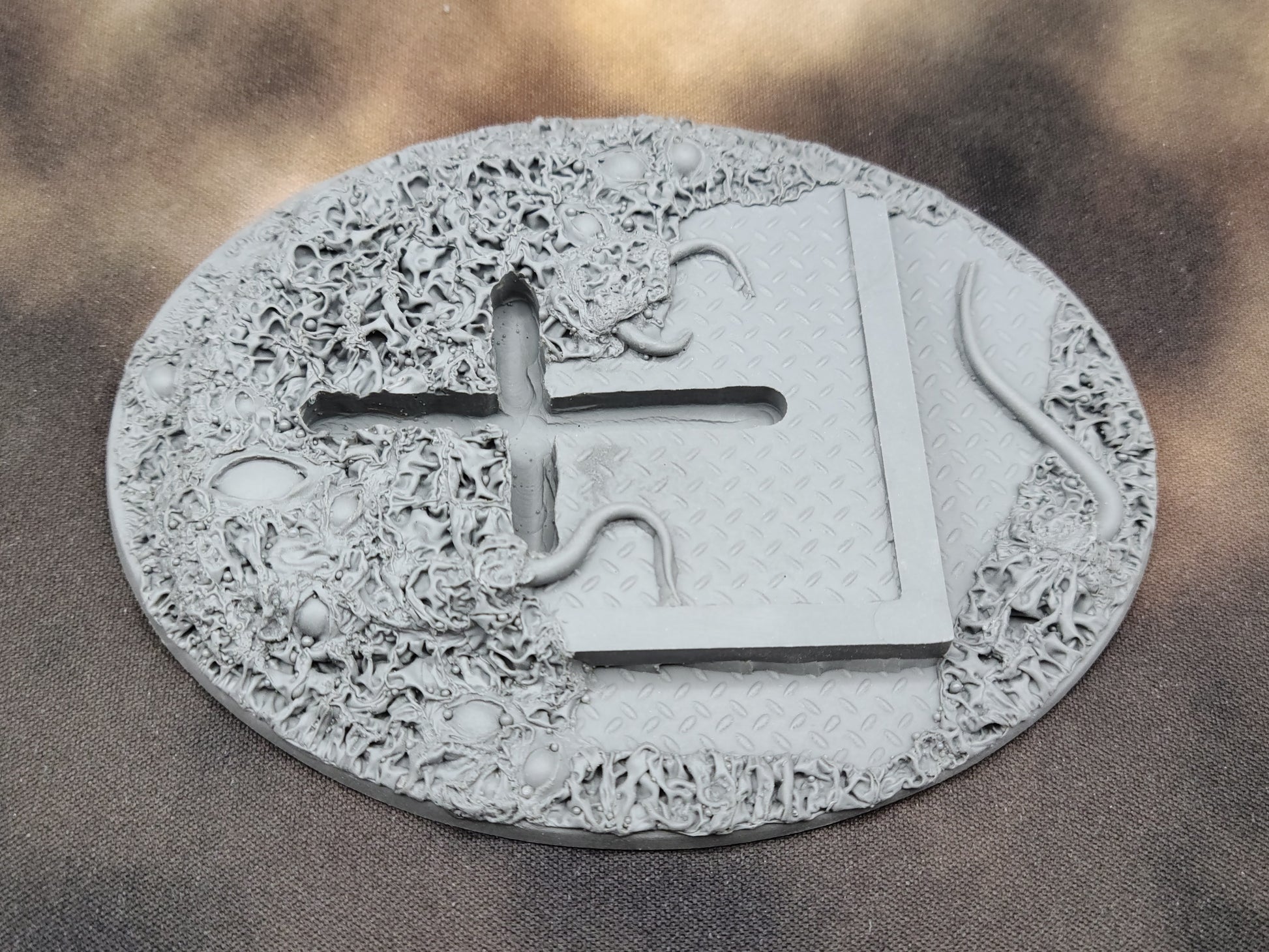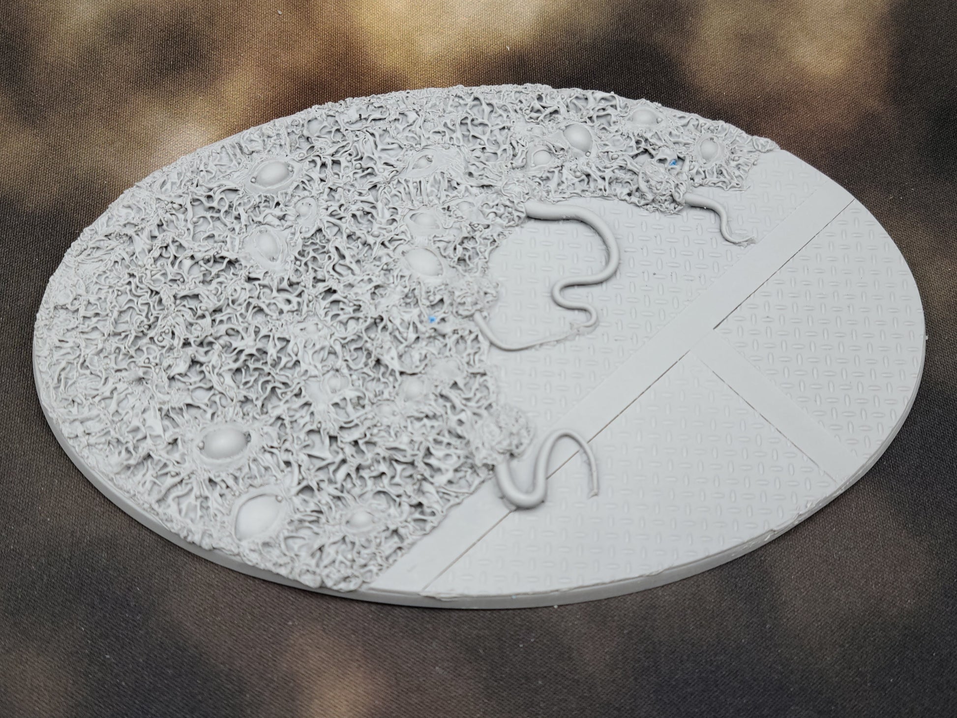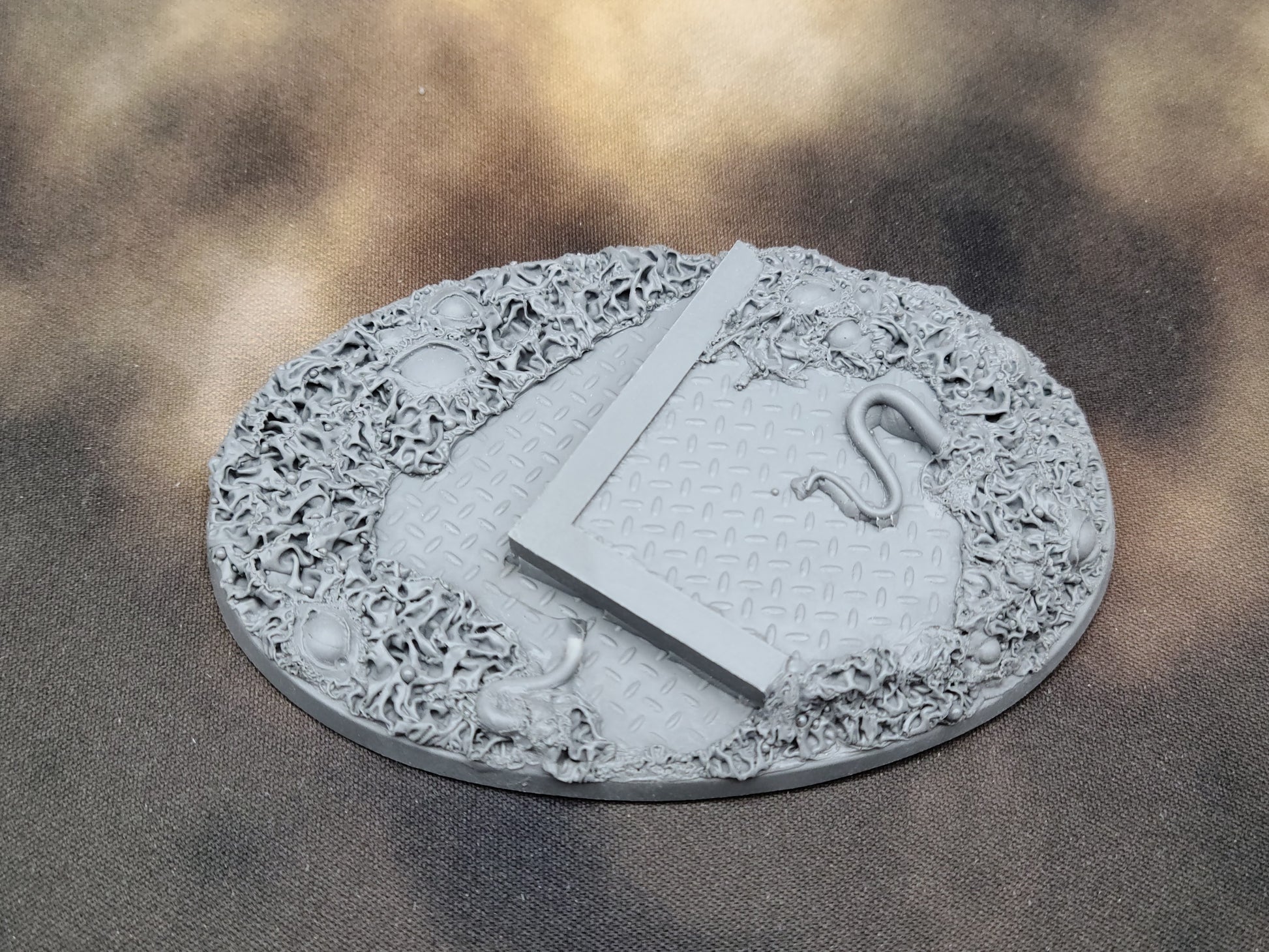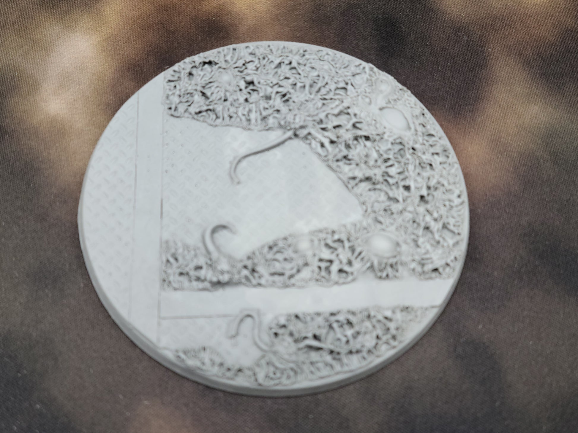 Fleshy sinew adorns the floor of a long-forgotten outpost. Perhaps, it isn’t totally abandoned after all? Our Corrupted Outpost bases are perfect for showing off an alien infestation or the corruption of some sort of dark god. Whether you put the creatures that caused the corruption on top or those who are fighting it is up to you!
