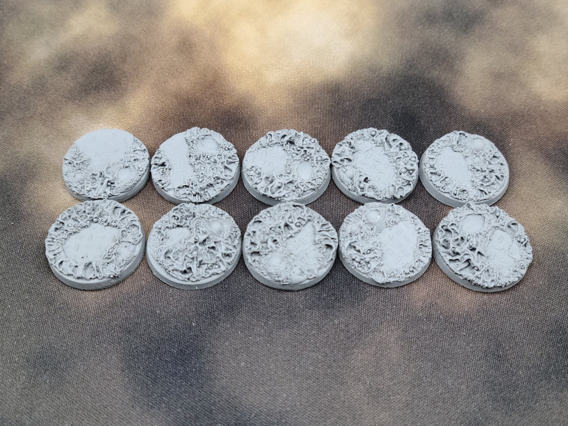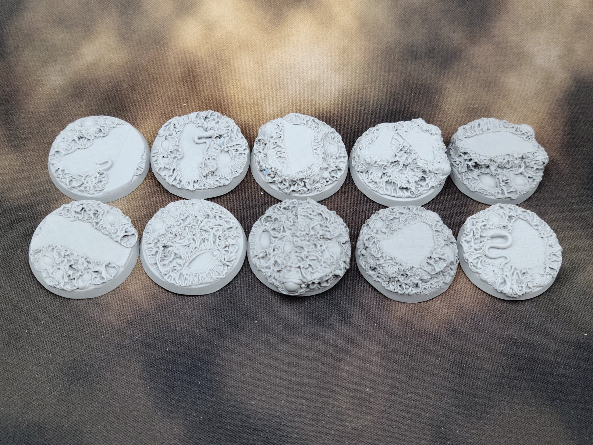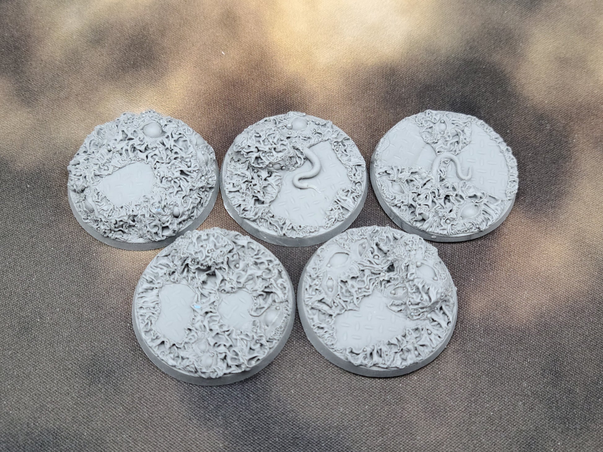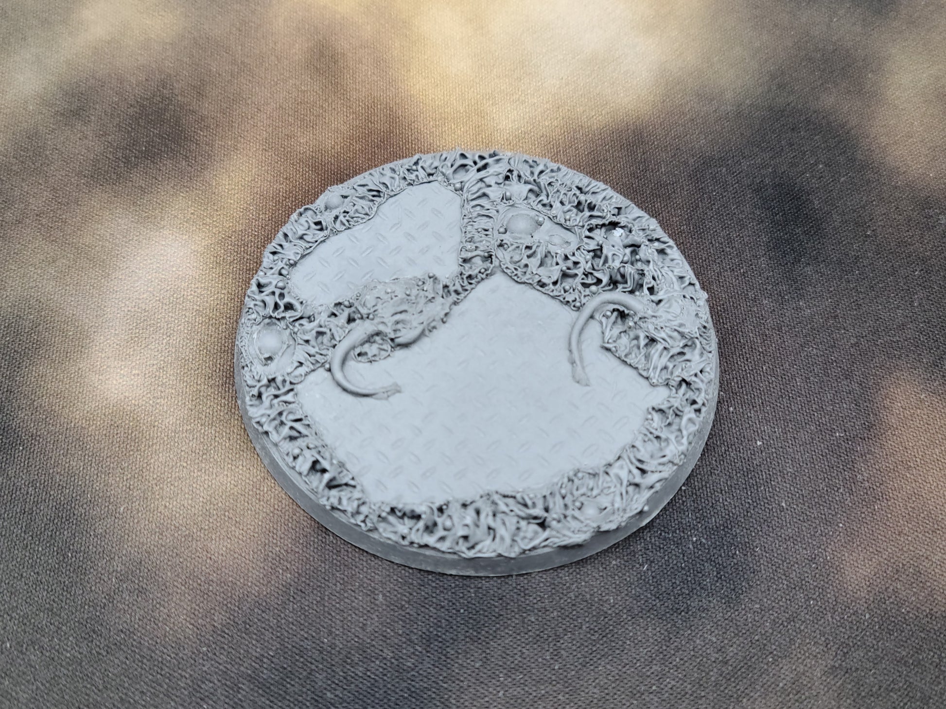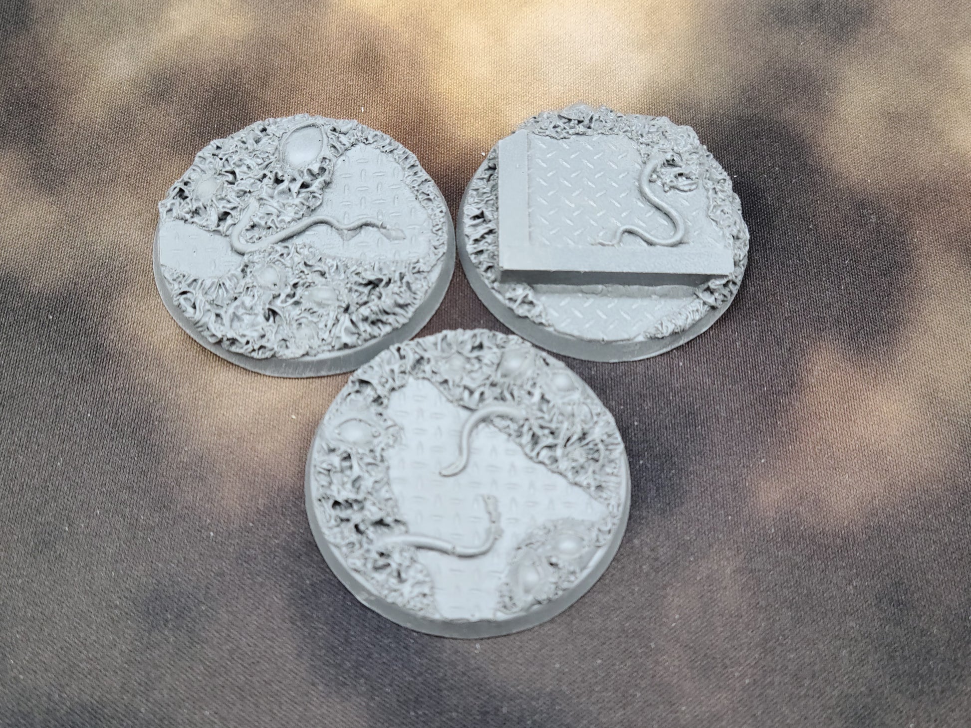 Fleshy sinew adorns the floor of a long-forgotten outpost. Perhaps, it isn’t totally abandoned after all? Our Corrupted Outpost bases are perfect for showing off an alien infestation or the corruption of some sort of dark god. Whether you put the creatures that caused the corruption on top or those who are fighting it is up to you!