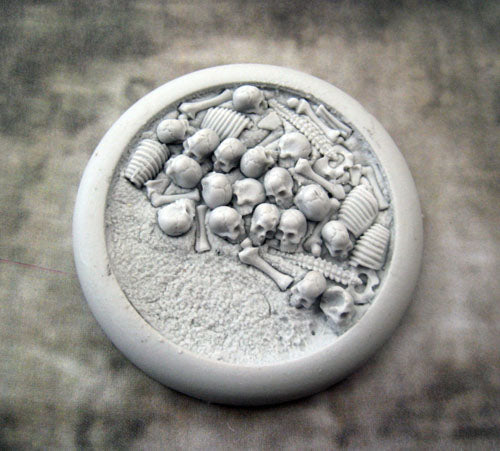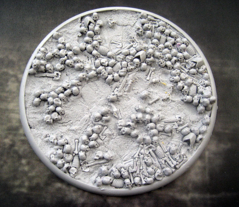 Bone Fields bases feature an ash-textured ground covered in human bones and a hollow body that allows you to use the base as-is or fill it with the blood recipe of your choice to put your models literally ankle-deep in gore!