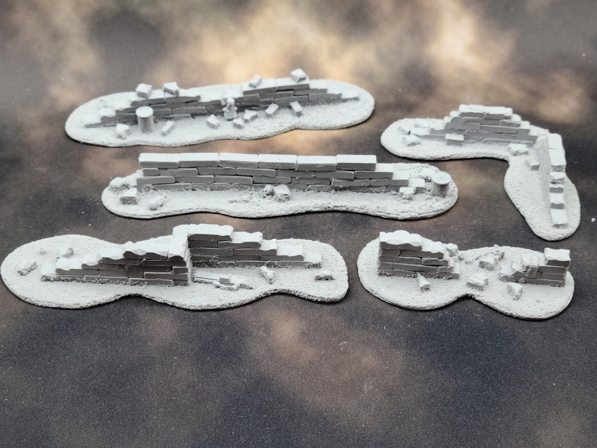 A small set of terrain representing some run-down brick walls. Perfect for adding cover to your skirmish game or adding some extra flair to your display board.