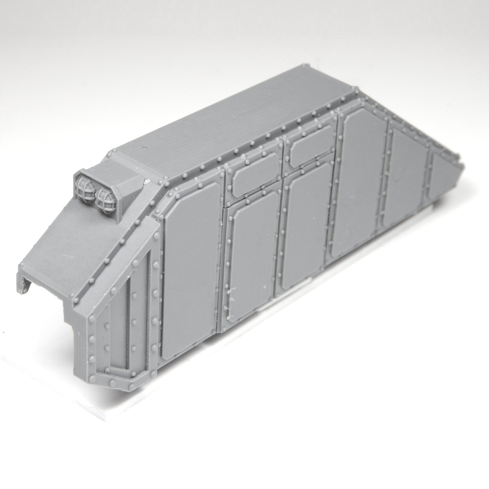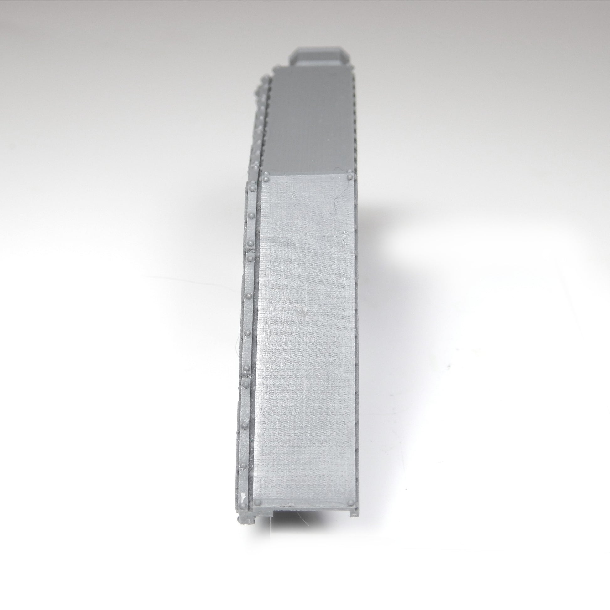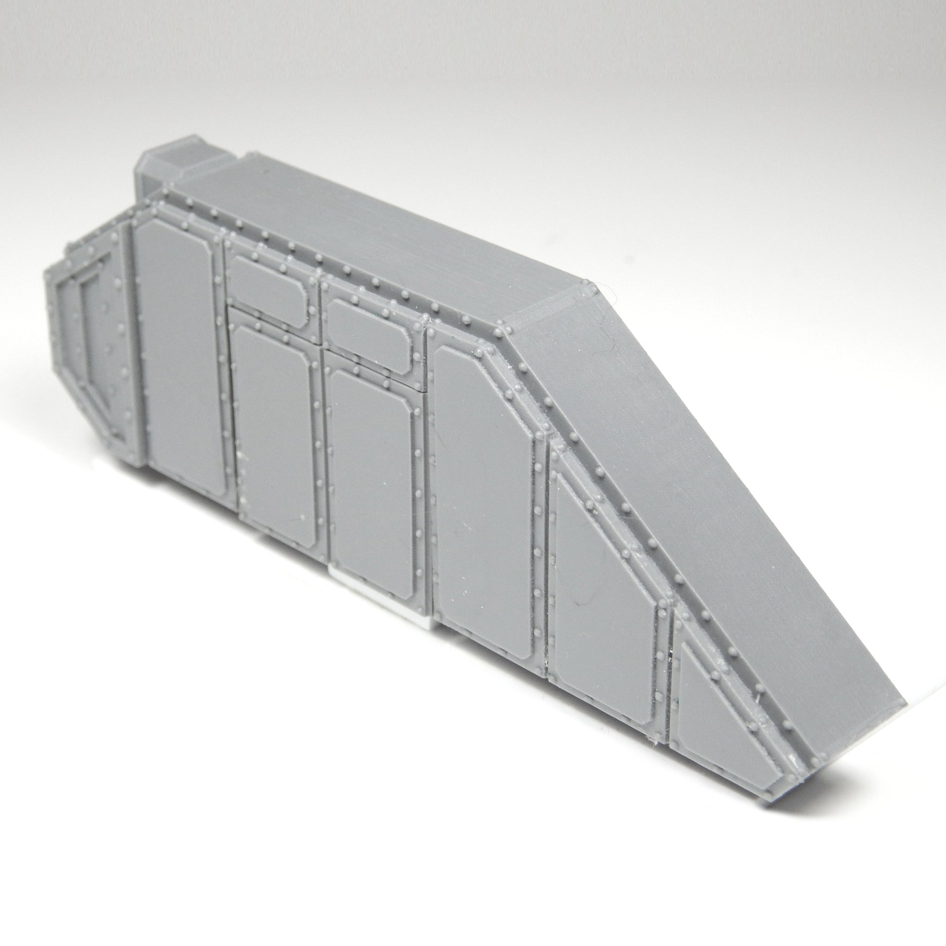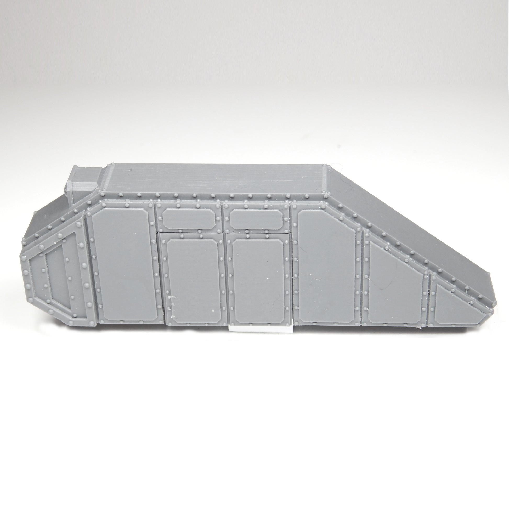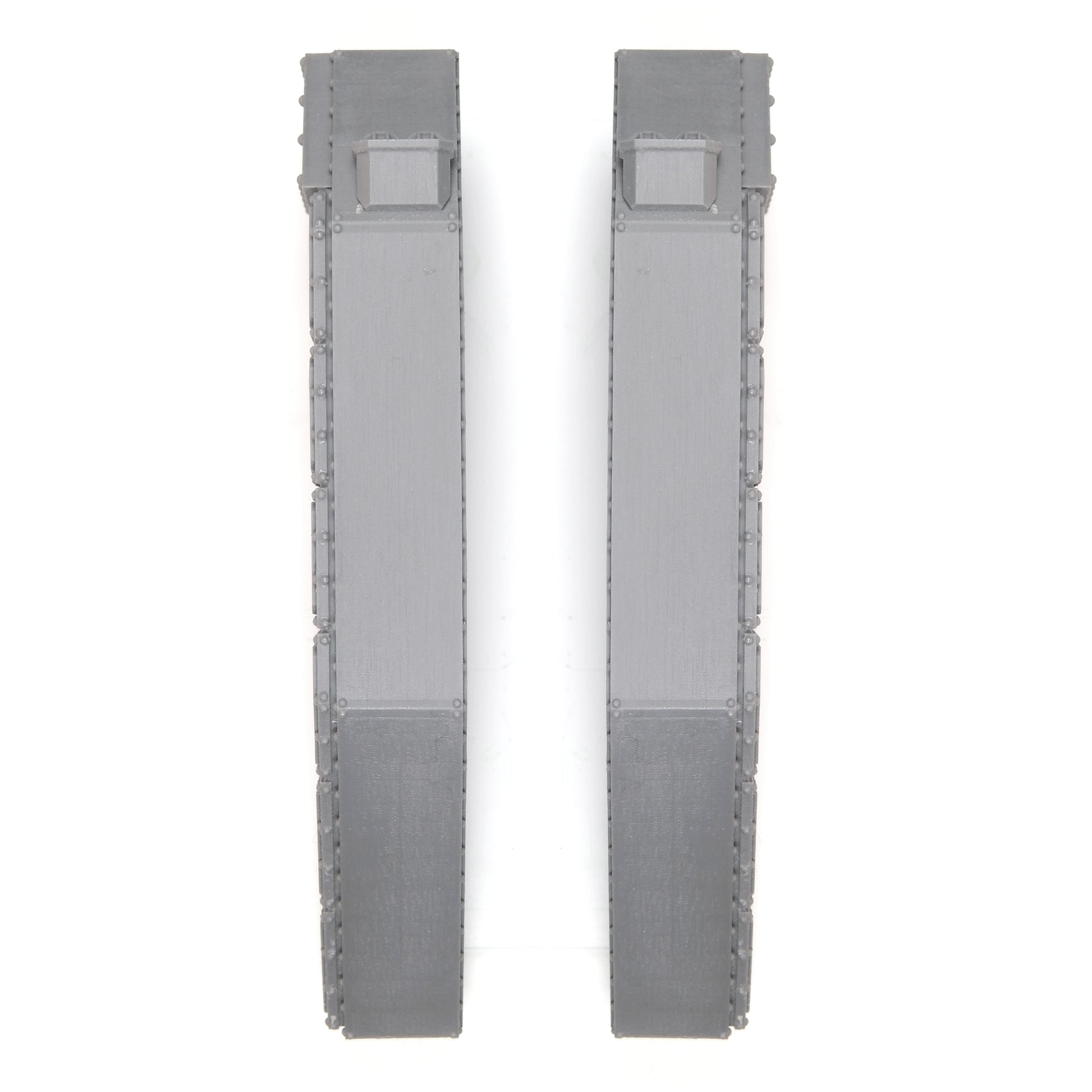 Each side is 4.2 inches (107mm) long, 1.5 inches (37mm) tall, and 0.7 inches (17mm) wide. This kit is compatible with the Games Workshop Leman Russ Battle plastic model. Each piece locks over the track assemblies of the tank providing instant armor. No glue or modifications necessary!