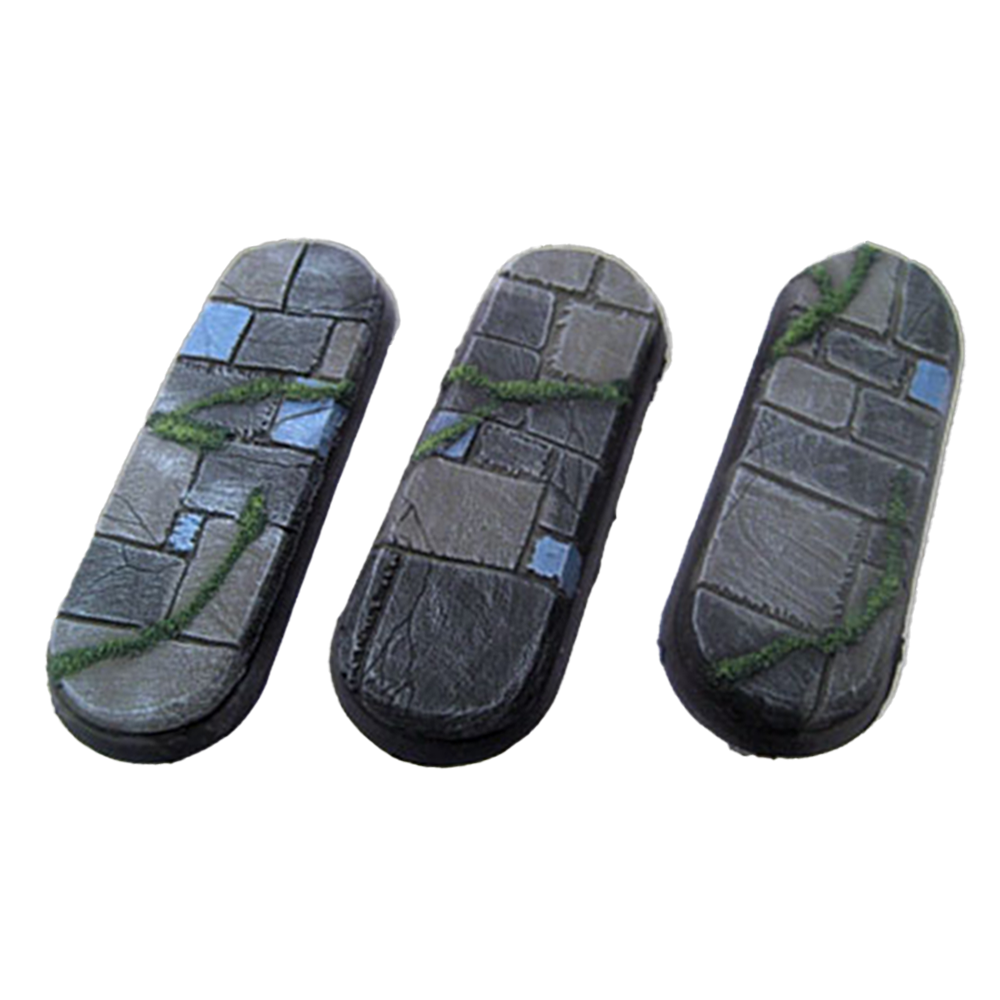 Flagstone bases include a flat surface with individual tiles on the floor. Some bases also include broken column pieces.