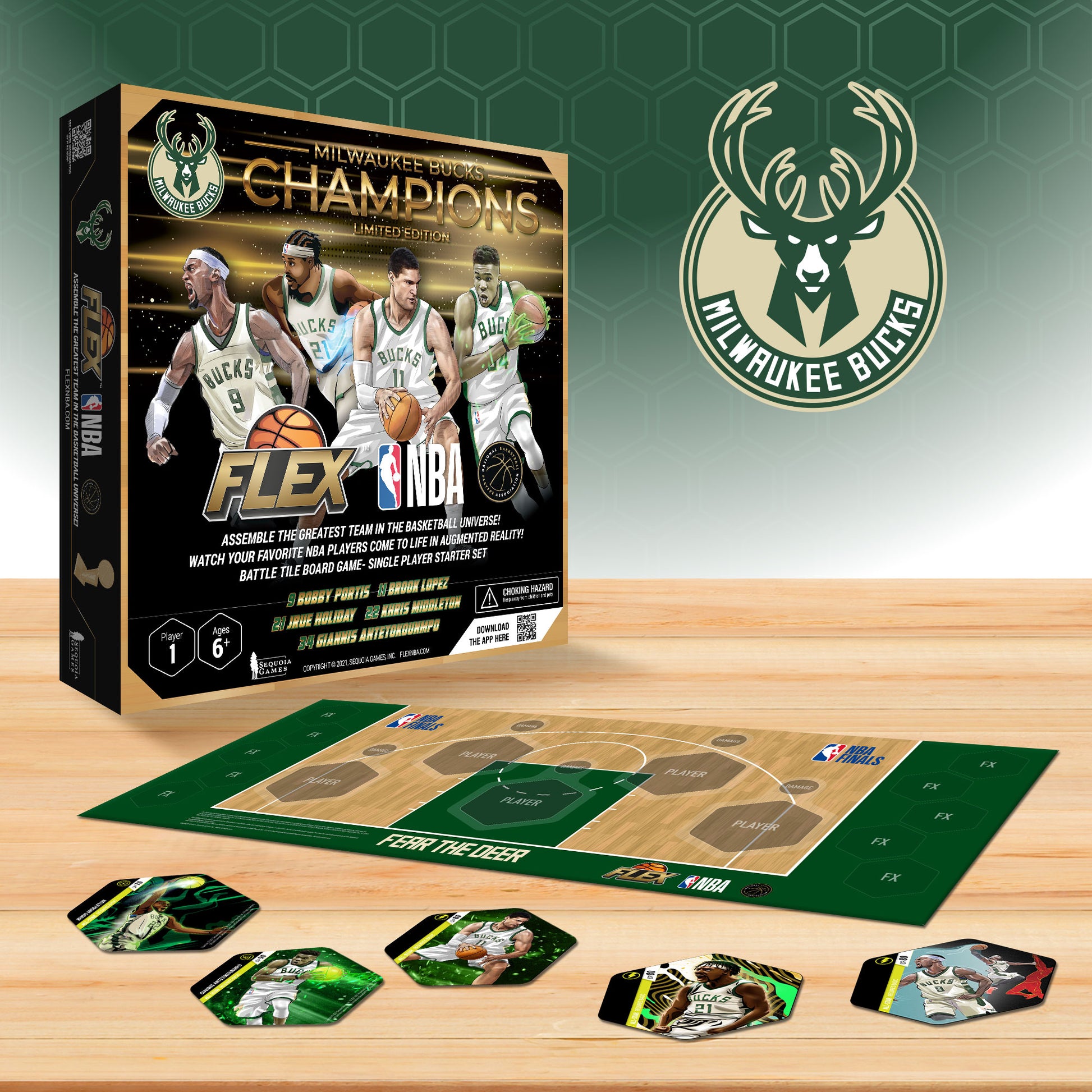 This Milwaukee Bucks Single-Player Starter Set includes an assortment of FLEX NBA Player Tiles ("Flexagons) from the 2021 NBA Championship team played on their home court. "Fear the Deer". This is the only place to get this exclusive Fiesery Forum Championship Game Board!