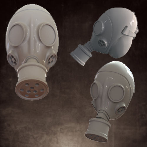 A set of five gas mask head swaps - with no helmet - cast in resin. Fully compatible with other multi-part 28mm gaming models.