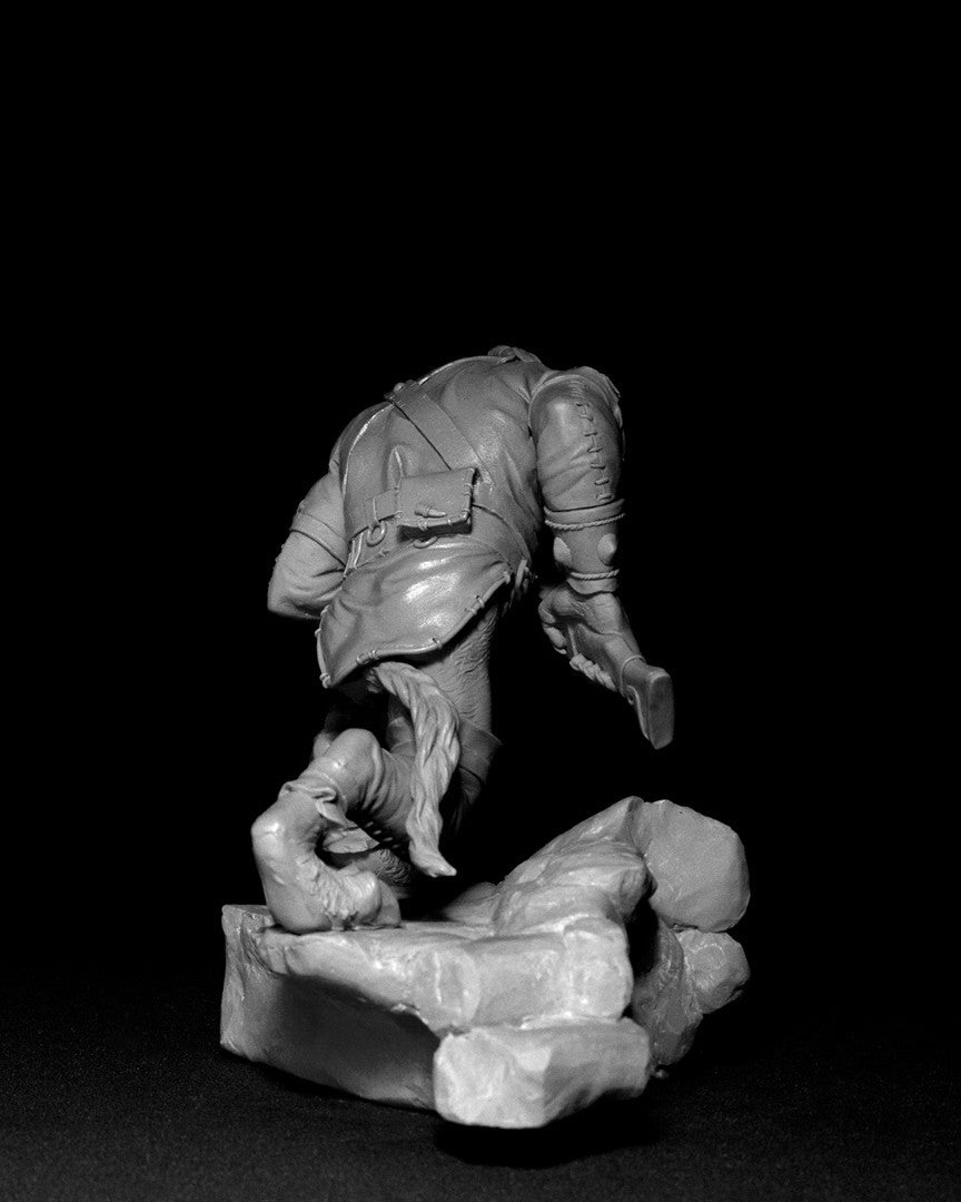 Lykaï the Freed is 75mm scale and the miniature measures 110mm from the base to the top of Lykaï's head. This is a high quality resin kit, comprising of 9 pieces. It is supplied unassembled and unpainted.