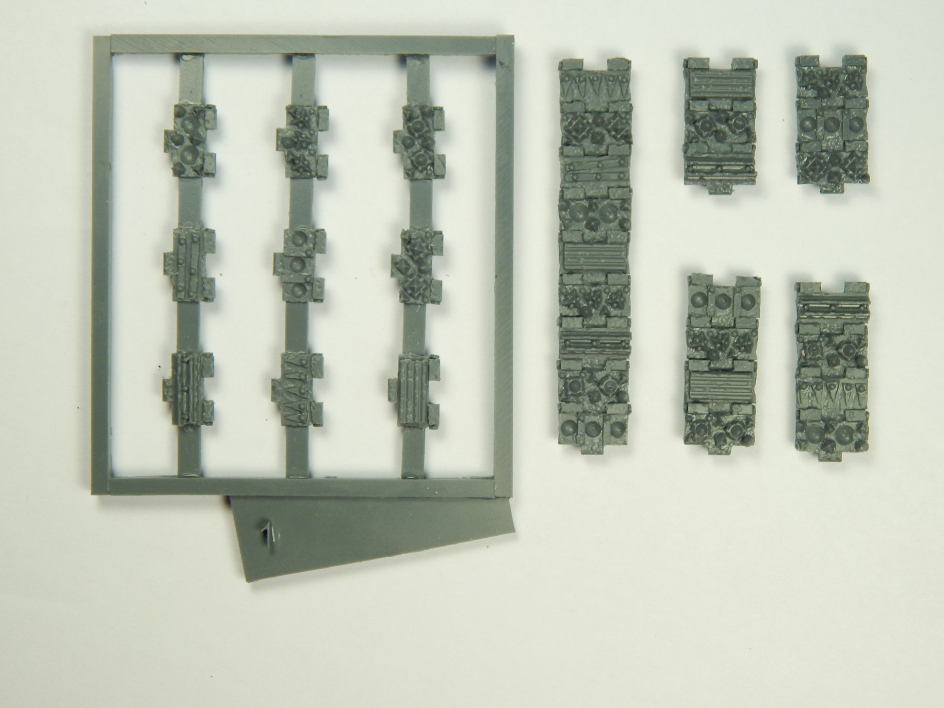 The kit consists of four 3-link sections, four 4-link sections, two 8-link sections, and 18 individual treads.