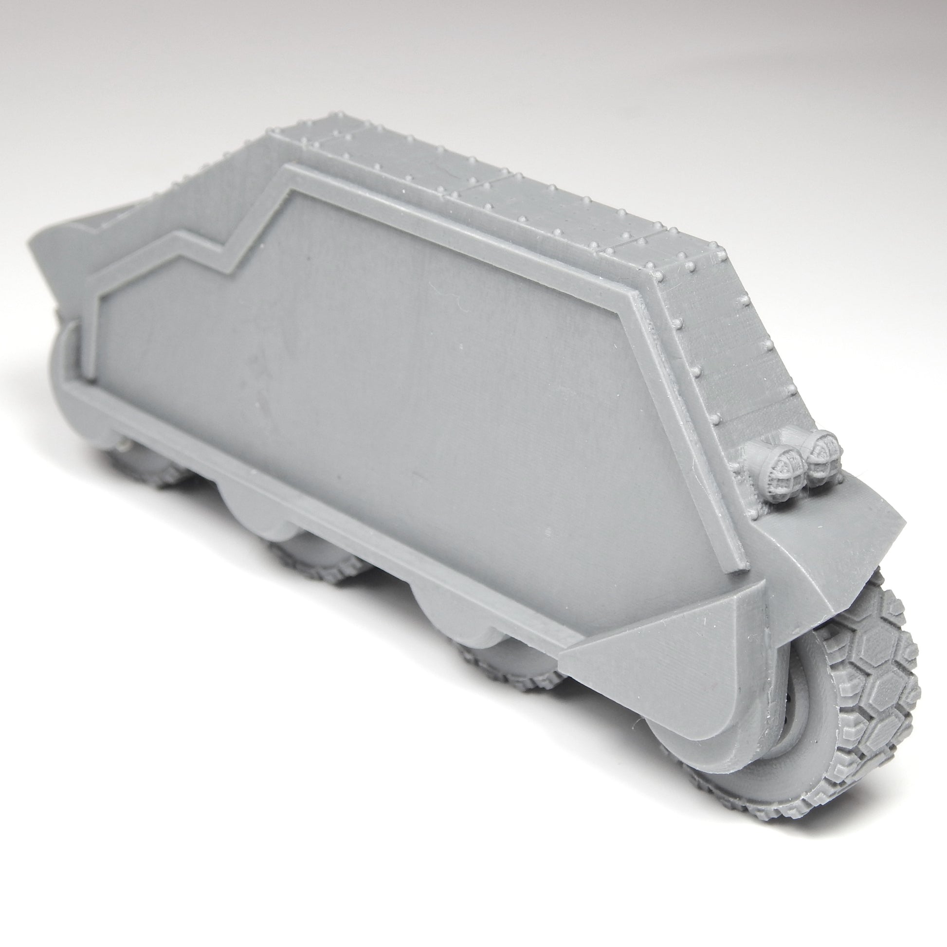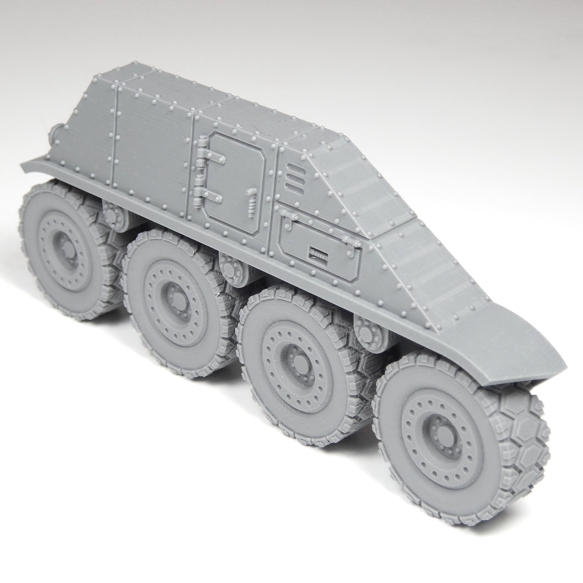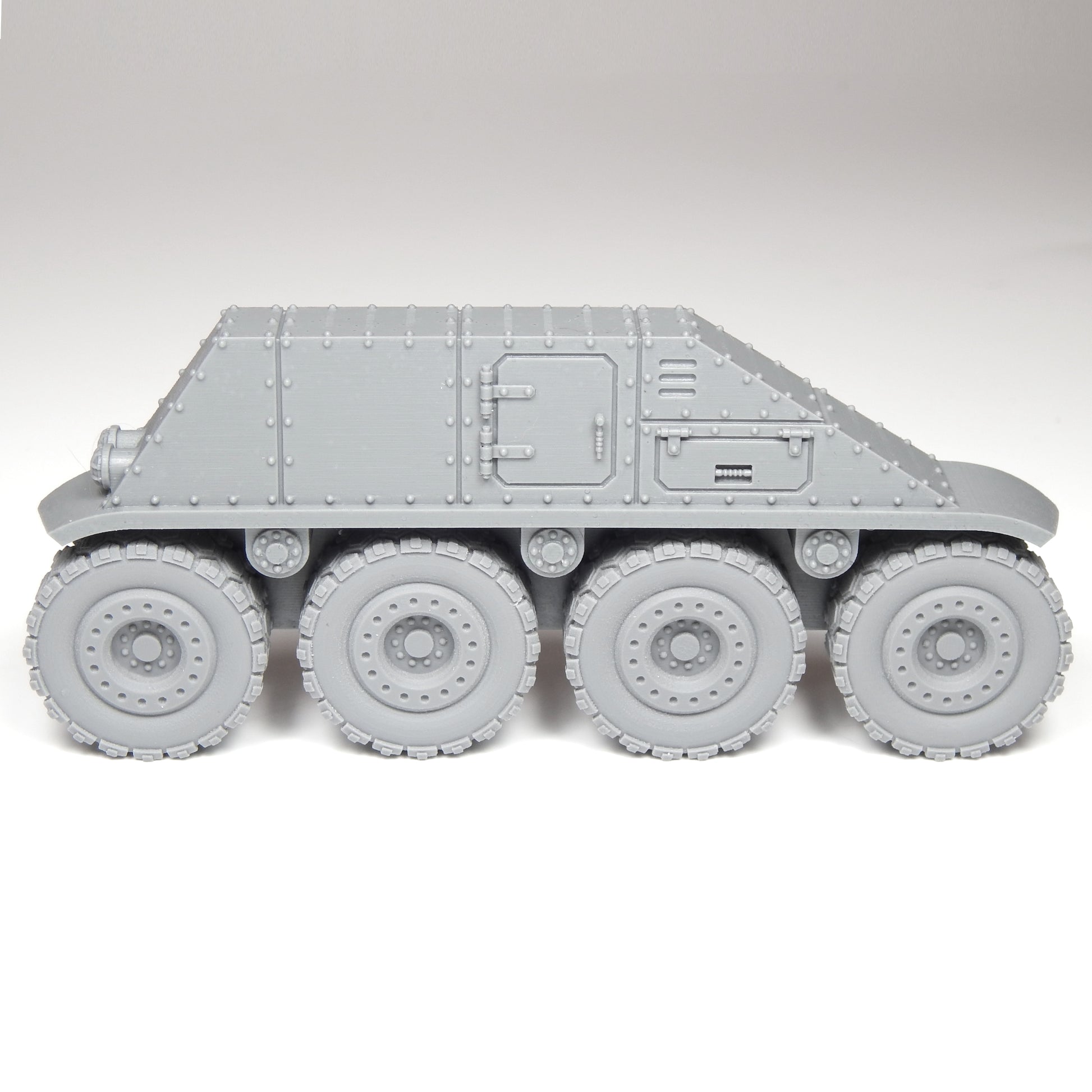 This Libra 8x8 Wheeled Conversion Kit comes with two custom side pieces and eight (8) Large Wheels. This kit is compatible with the Games Workshop Leman Russ plastic model.