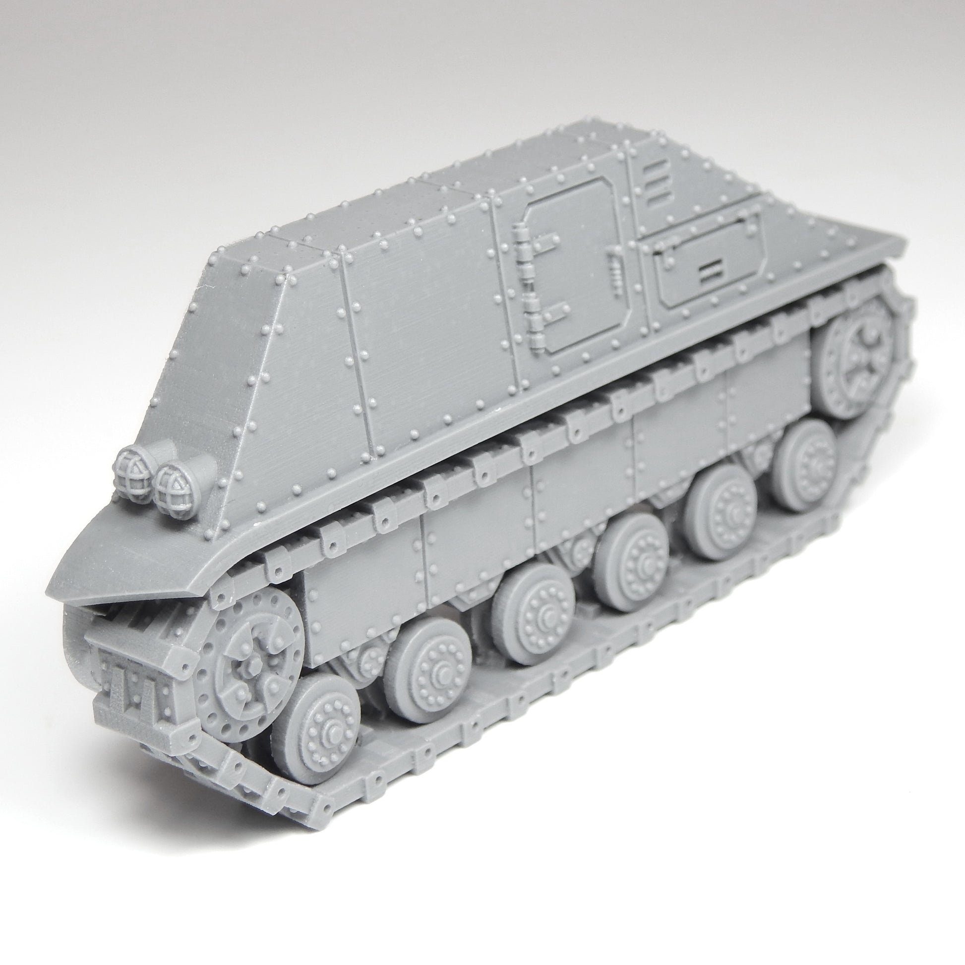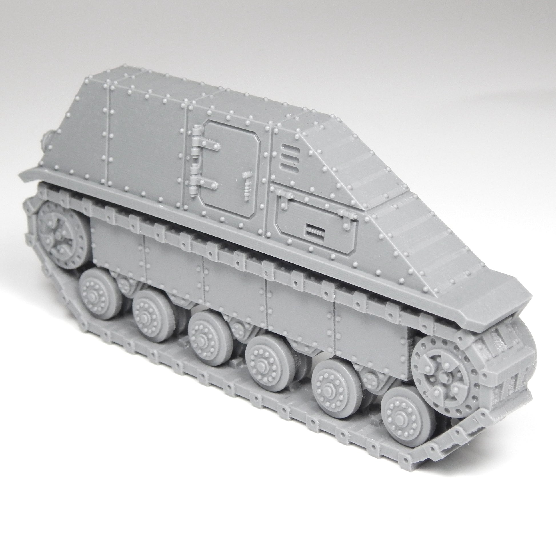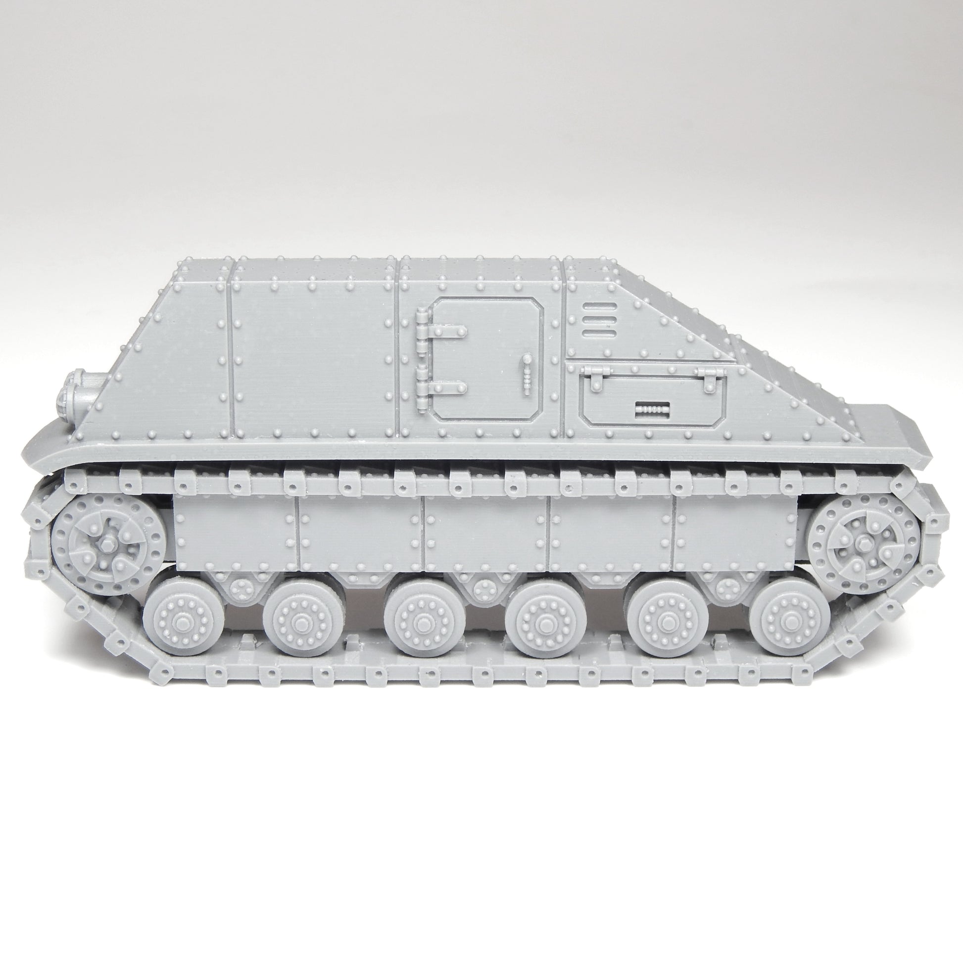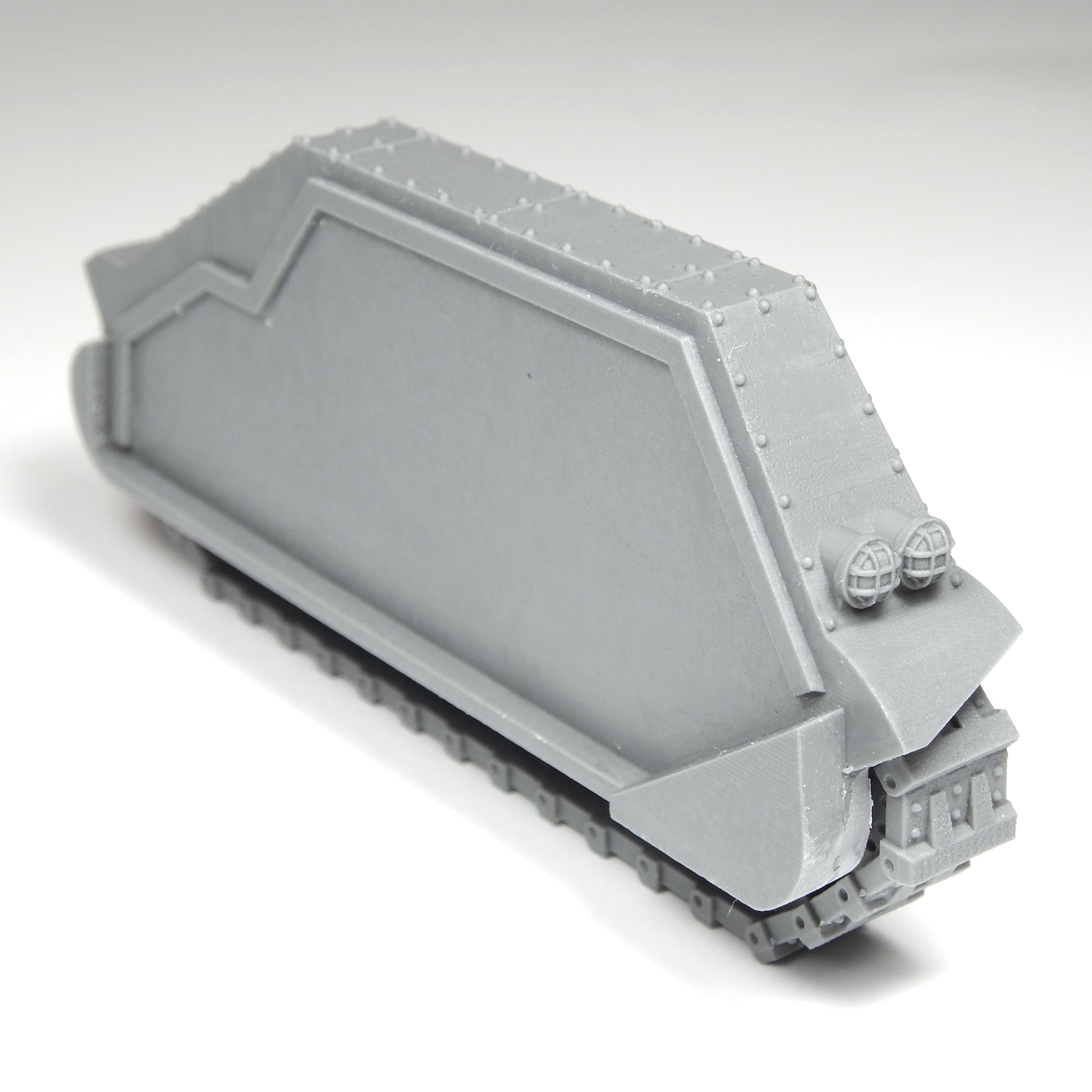 This Aquarius Full-Track Wheeled Conversion Kit comes with two custom side and two (2) full-track sections each with eight (8) separate road wheels. This kit is compatible with the Games Workshop Leman Russ plastic model.