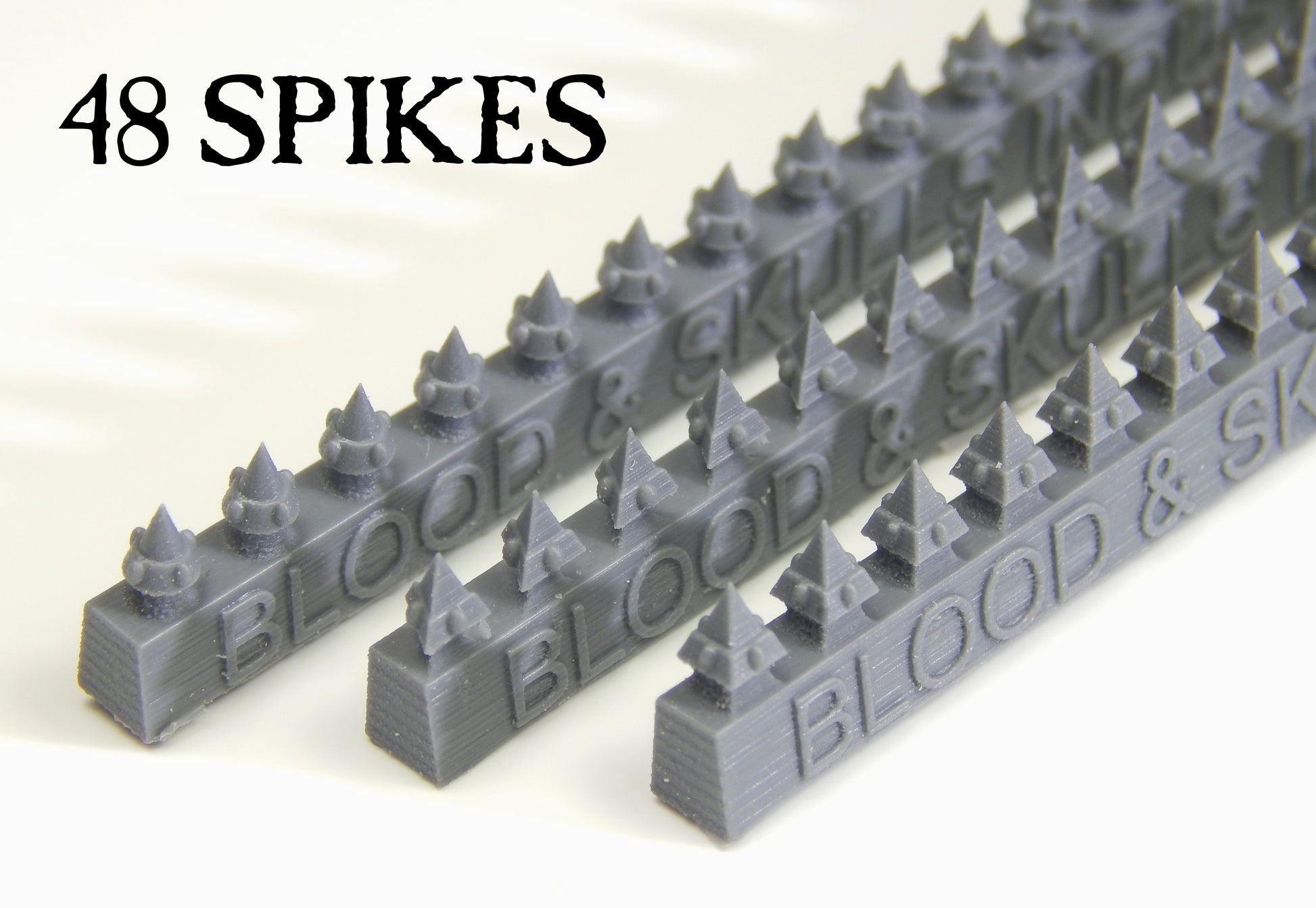 The Medium/Short Spikes Sampler come with a sprues of Square, Round, and Triangular for a total of 45 individual spikes.