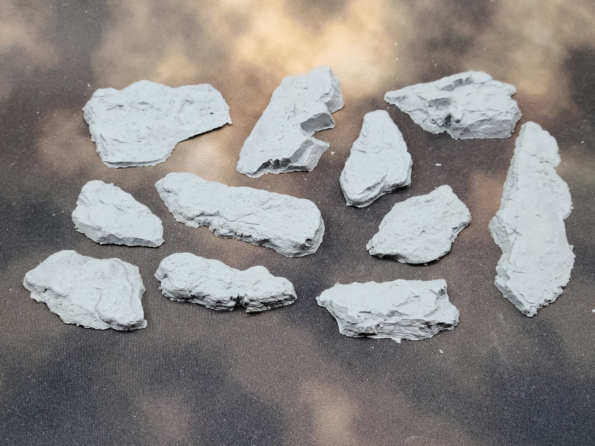 A set of terrain representing rock. Perfect for adding cover to your skirmish game or adding some extra flair to your display board.