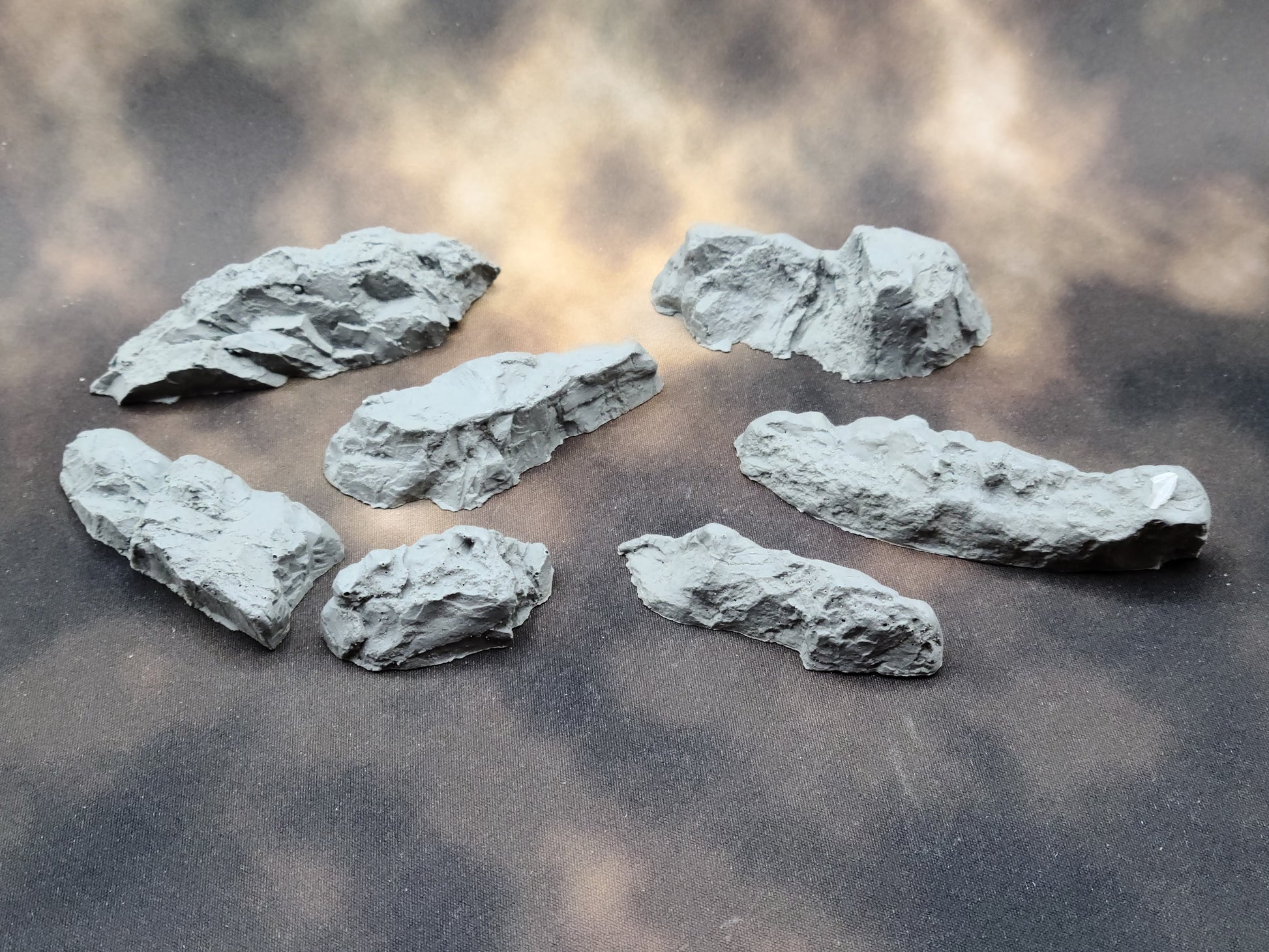 A set of terrain representing rock. Perfect for adding cover to your skirmish game or adding some extra flair to your display board.