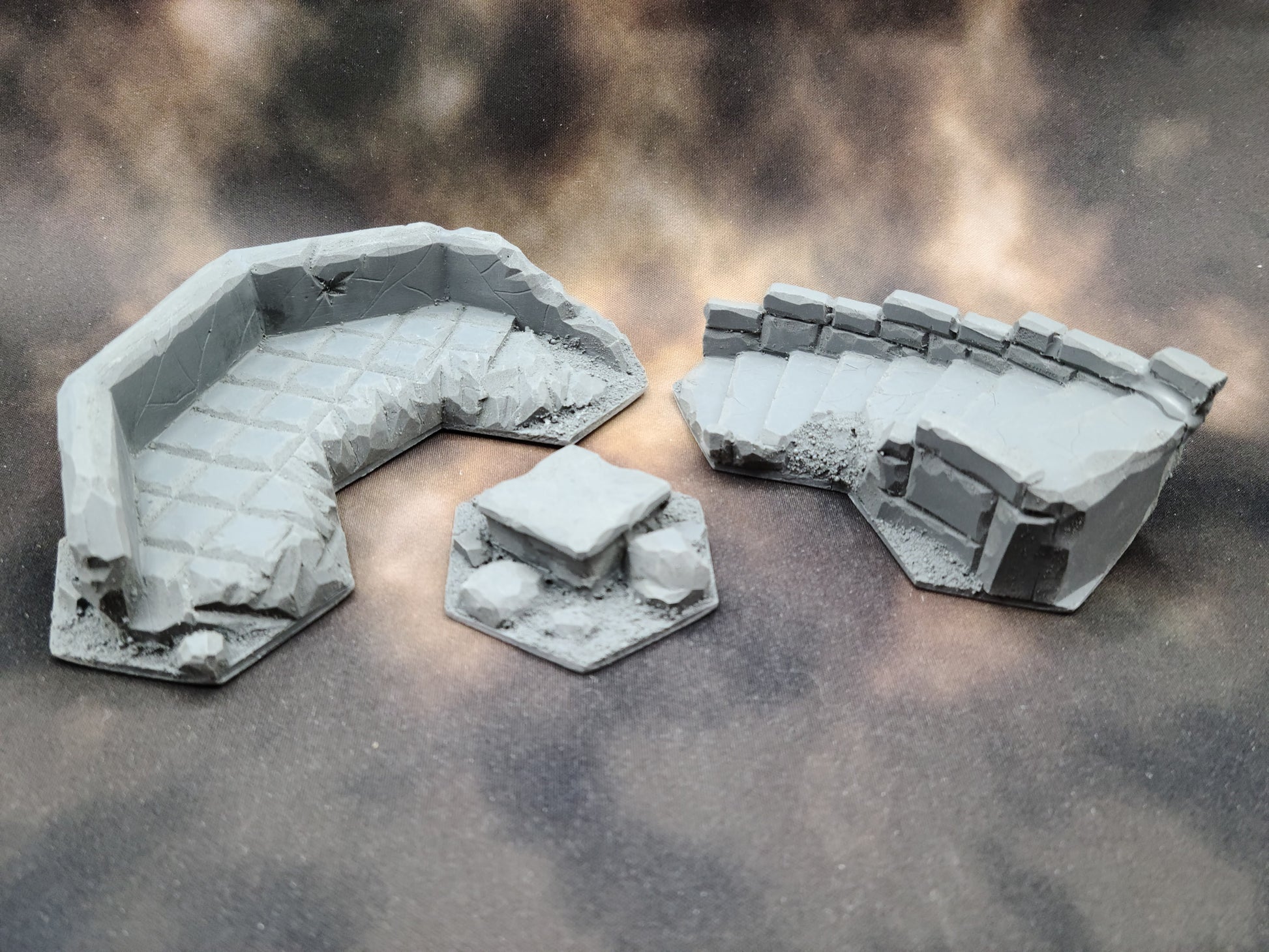 Made to look like you’re adventuring through a set of ancient ruins, this terrain fits perfectly into any skirmish scale game or as scatter terrain for larger ones! Our products are all made and designed in-house and cast in high-quality resin as to pass savings along to you. Additionally, these pieces of terrain require no building on your part, so you can start working on them right out of the box!