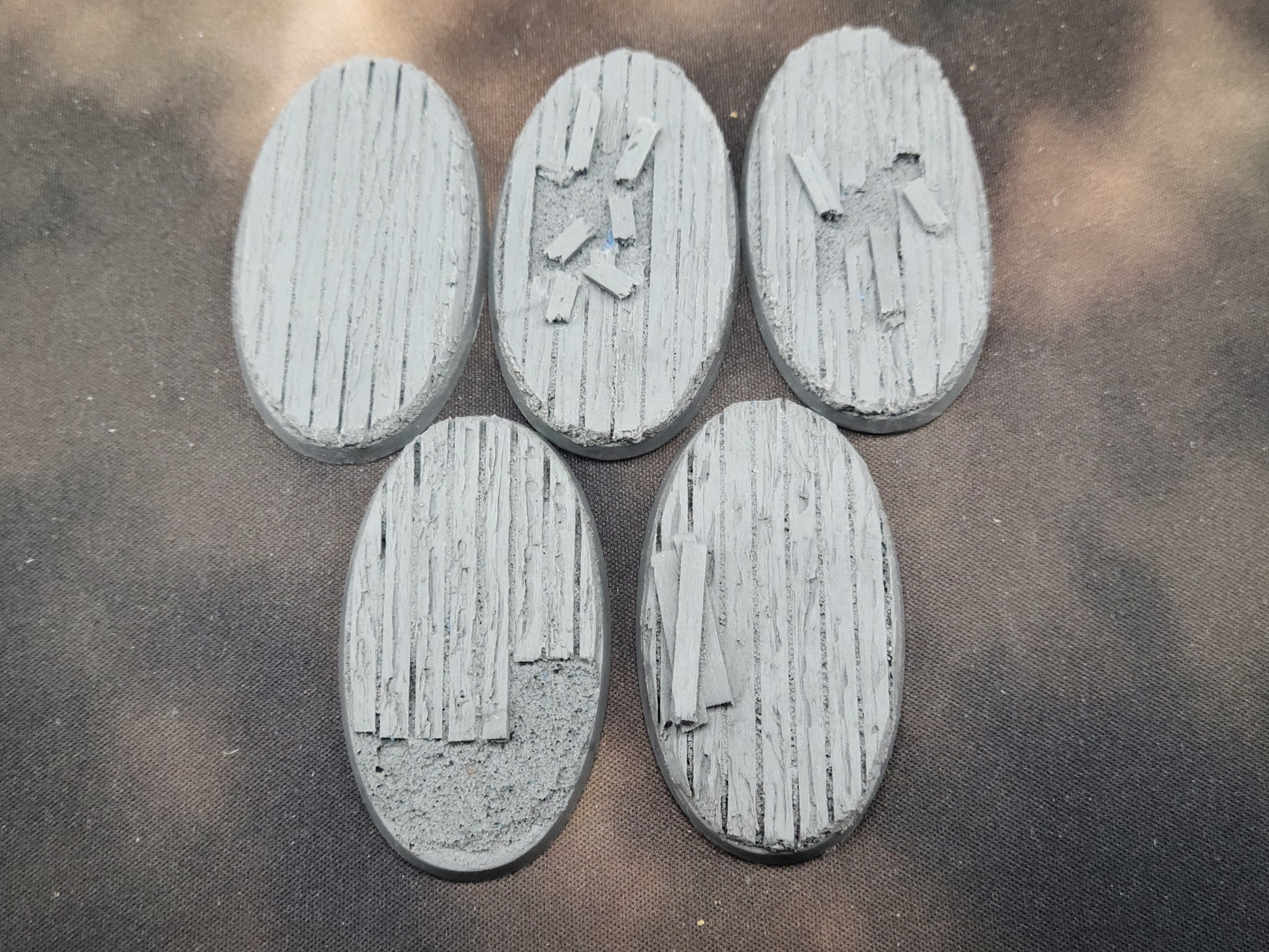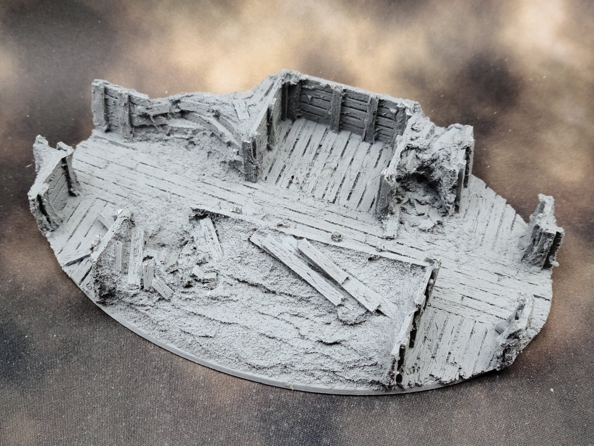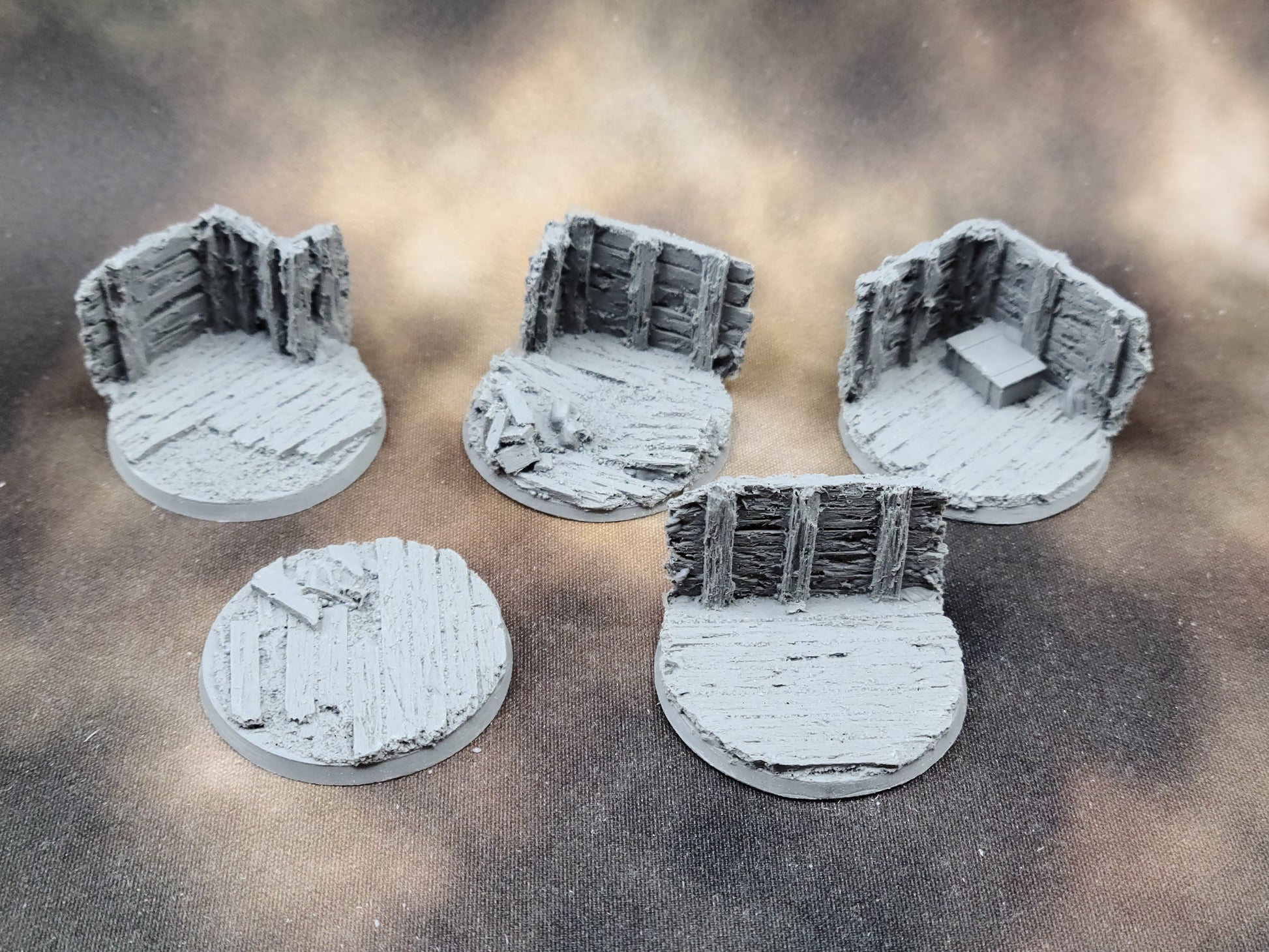 These trench bases are meant to represent the wooden board flooring used in trench warfare. Mud and dirt seep up between the boards. But with just a little work, they can be the flooring of a particularly ill kept in or the inside of an inner keep.