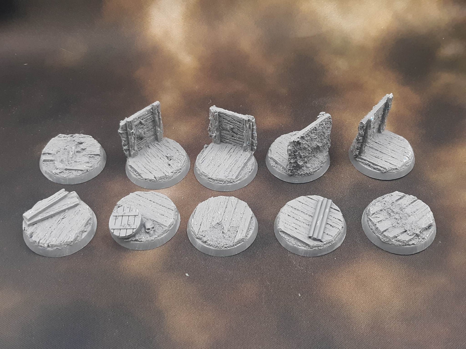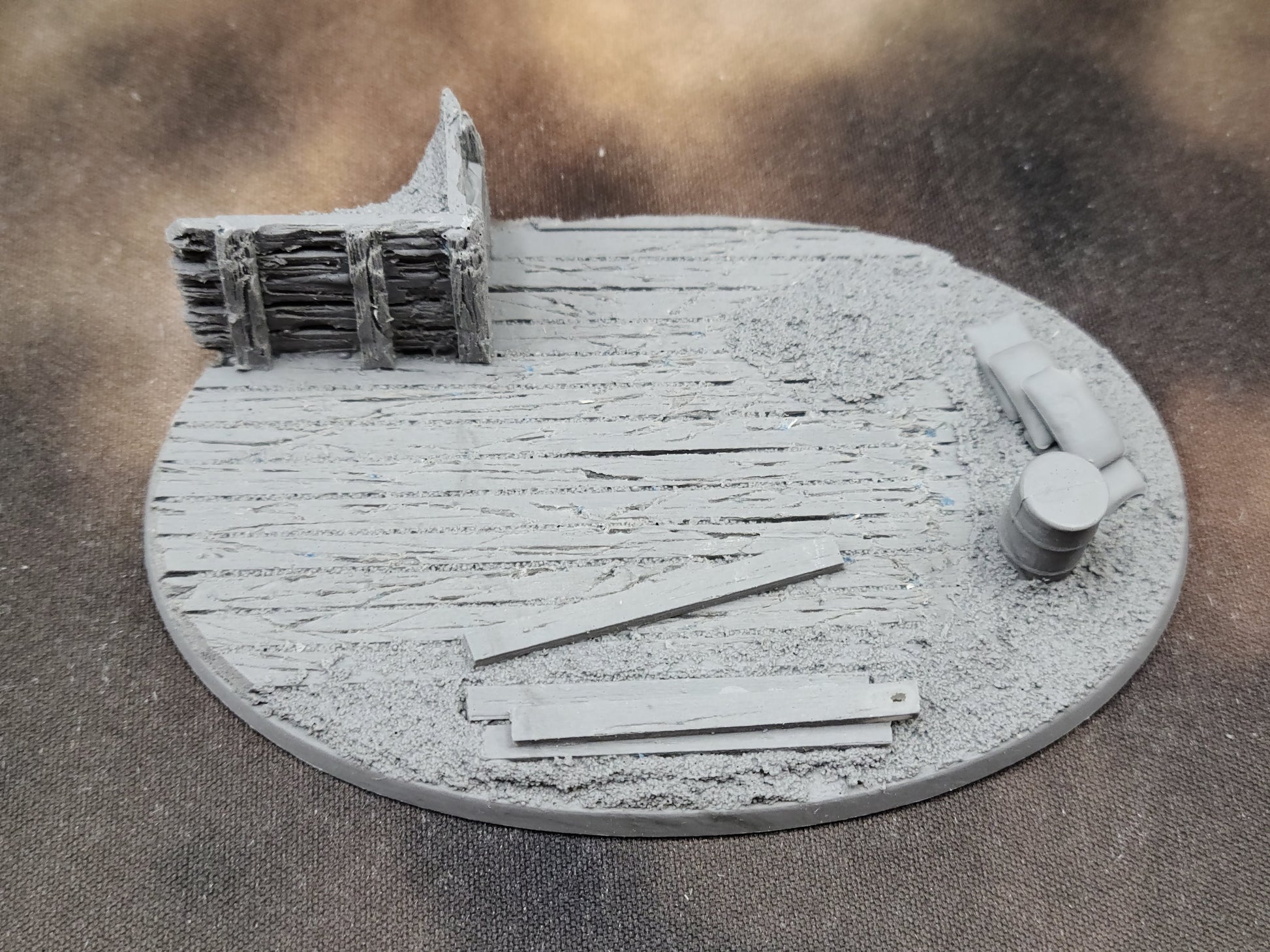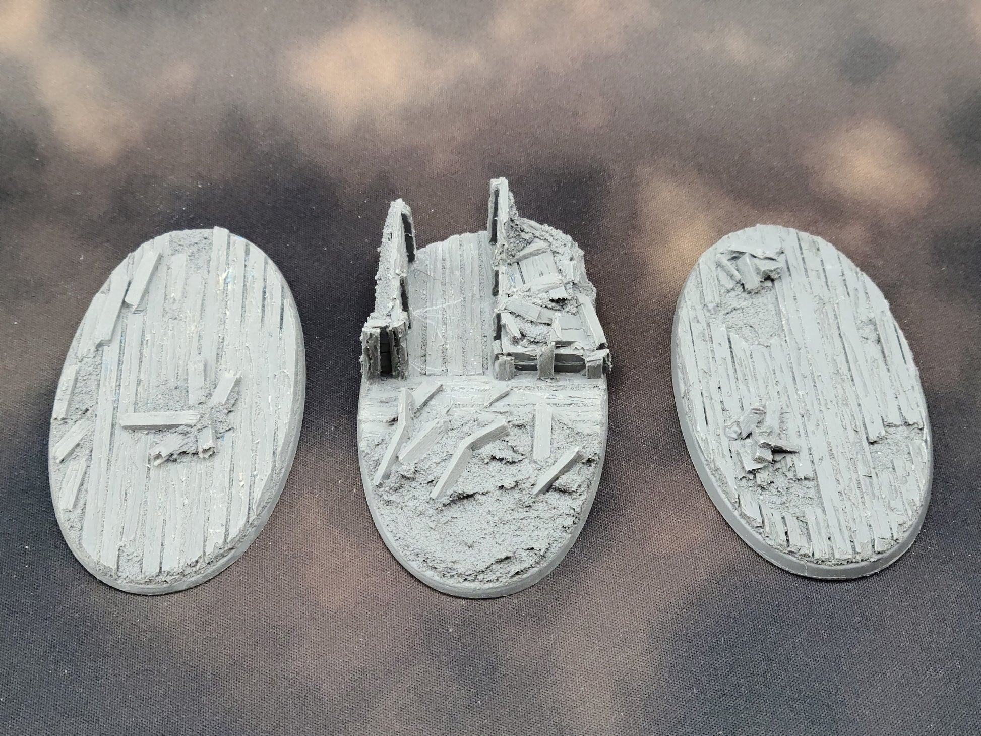 These trench bases are meant to represent the wooden board flooring used in trench warfare. Mud and dirt seep up between the boards. But with just a little work, they can be the flooring of a particularly ill kept in or the inside of an inner keep.